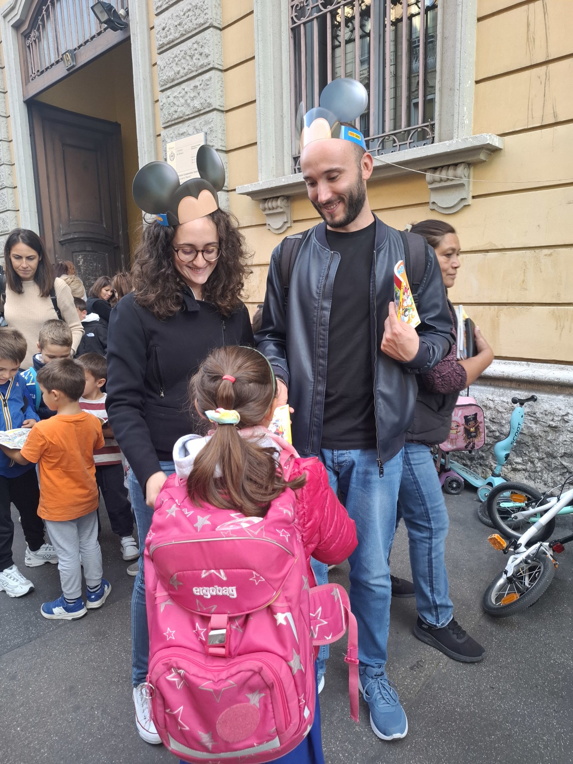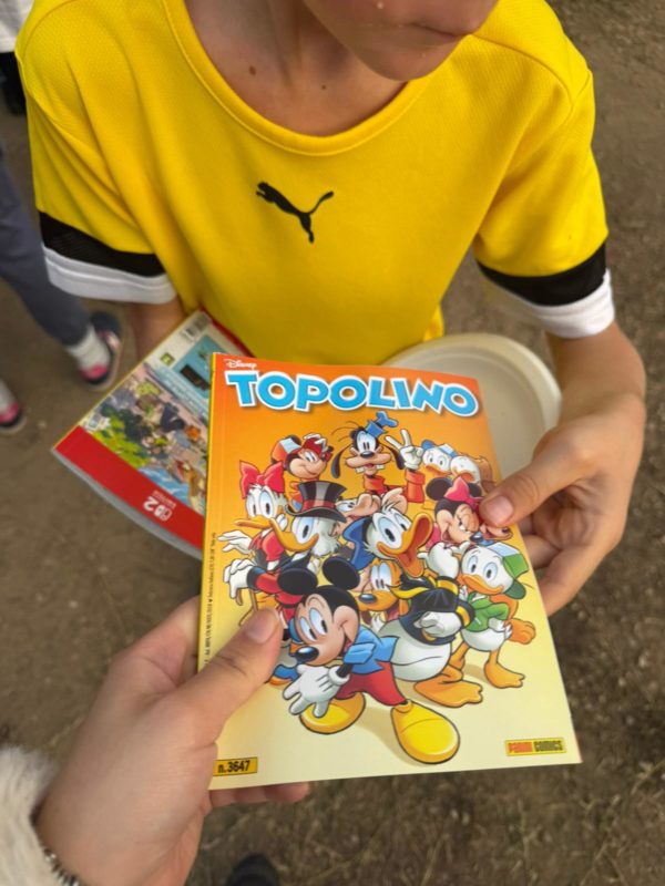 Affianco a Panini nella distribuzione in scuole elementari e medie di tutta Italia per Calciatori e Topolino. Bambini di ogni generazione felici. Orgogliosi di partecipare a un’azione ormai appuntamento fisso da oltre oltre 50 anni.
